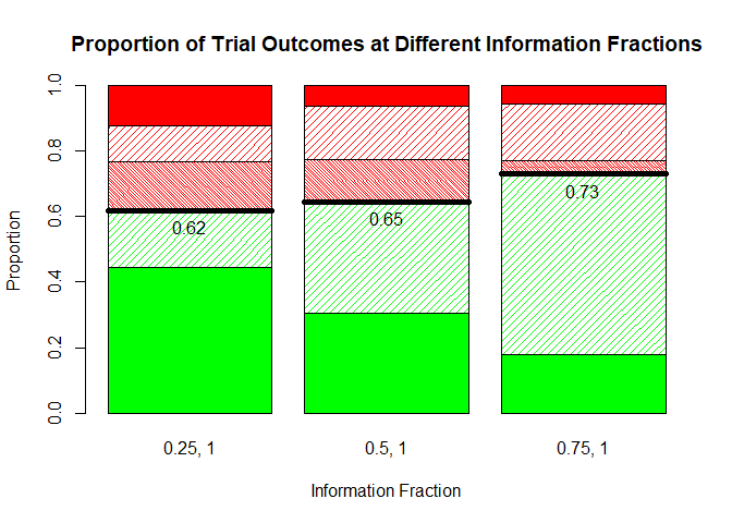 If we wish to compare the operating characteristics we can do so by changing the GSD_model and plotting the proportion of outcomes: