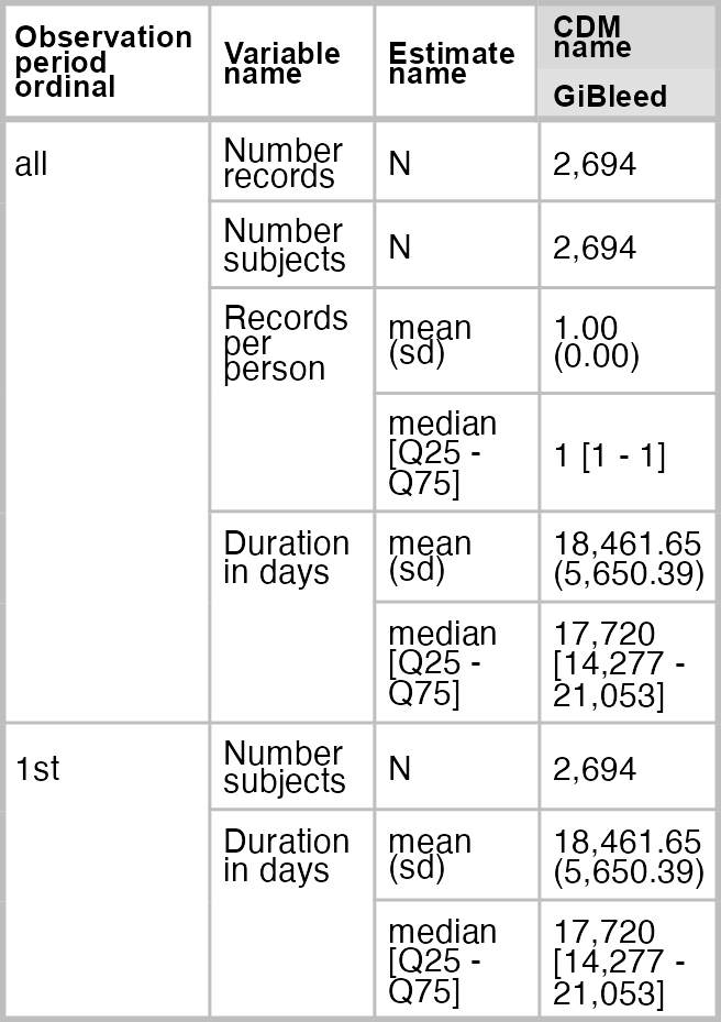 tableObservationPeriod(result = result, type = "flextable")