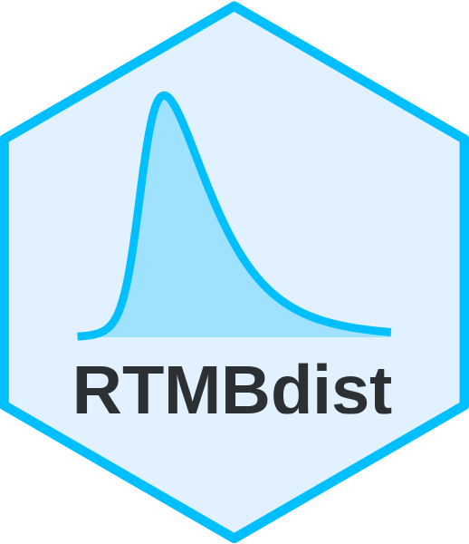 The full list of distributions currently available is given in the List of distributions vignette. There are also a couple of Worked examples demonstrating how to use RTMBdist in practice.
