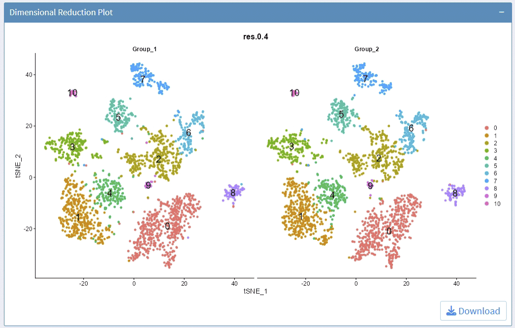 A: Yes! Most visualizations can be downloaded as PDF files. Analysis results (DEGs, feature summaries, etc.) can be downloaded as CSV files. Cluster name mappings can also be exported.