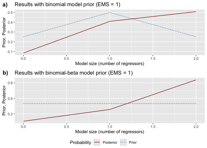 #>               Prior model size Posterior model size