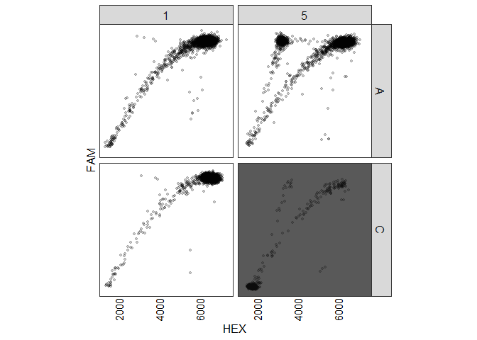 Note: throughout this document, FAM will be synonymous to Y axis and HEX will be synonymous to X axis, as a reflection of the fact that conventionally when visualizing the data the FAM intensity is plotted on the Y axis and the HEX intensity is on the X axis.