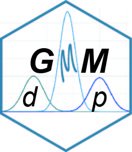 Package functionality: 1) Variety of criteria for selection component number (AIC, AICc, BIC, ICL-BIC and LR), 2) Posibility of merging the components with a small standard deviation within each other, 3) Control of minimum allow variance of component to avoid picks, 4) Quick stop if LR test does not show improvement (off/on) accompanied by possibility to control significance level, 5) Analysis of single measurements/vector as well as binned data, 6) Distribution plot with selected components in ggplot, 7) QQ-plot of fitted distribution and standard normal distribution, 8) Gaussian Mixture Modeling for 2D data.