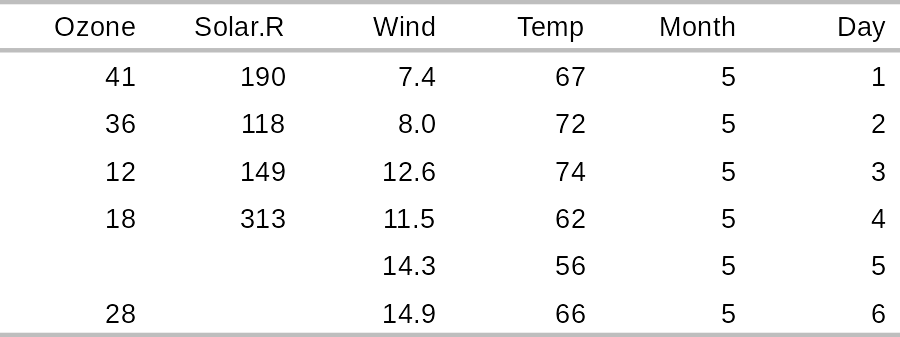 ggplot2::diamonds[, c("cut", "carat", "price", "clarity", "table")] |>