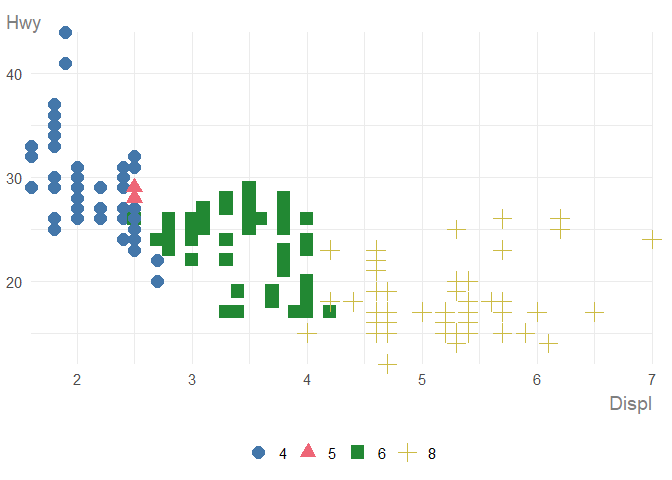 Similarly, you can edit the default colour/fill scales. However, the default palette is chosen to be accessible.
