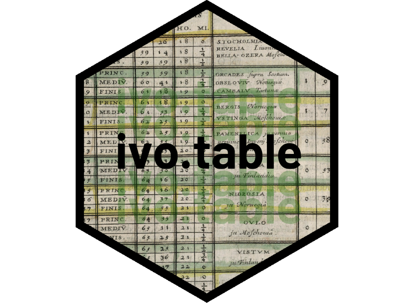 This package is used to quickly create pretty frequency tables and contingency tables/cross-tables. The main function is ivo_table. In addition, it is also possible to create masked tables, where cells with low counts are censored, using ivo_table_masked.