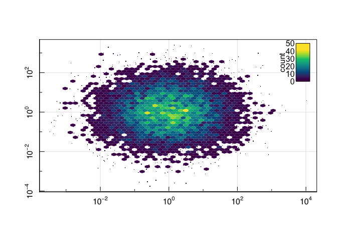 = cbind(10^rnorm(1e4), 10^rnorm(1e4))