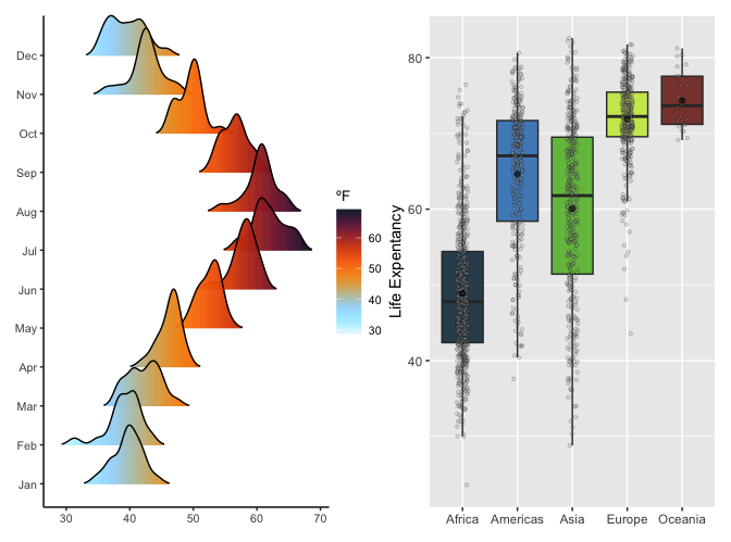 p2 <- ggplot(gapminder, aes(x = continent, y = lifeExp, fill = continent)) +