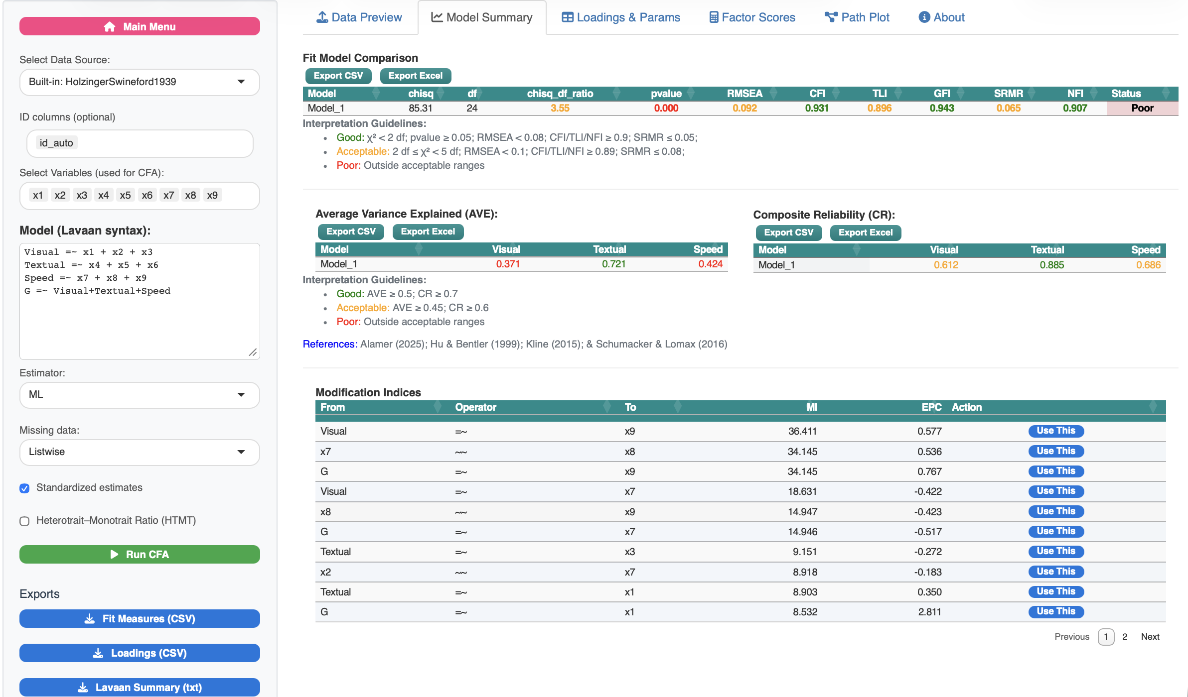 ✔ Confirmatory Factor Analysis (CFA)