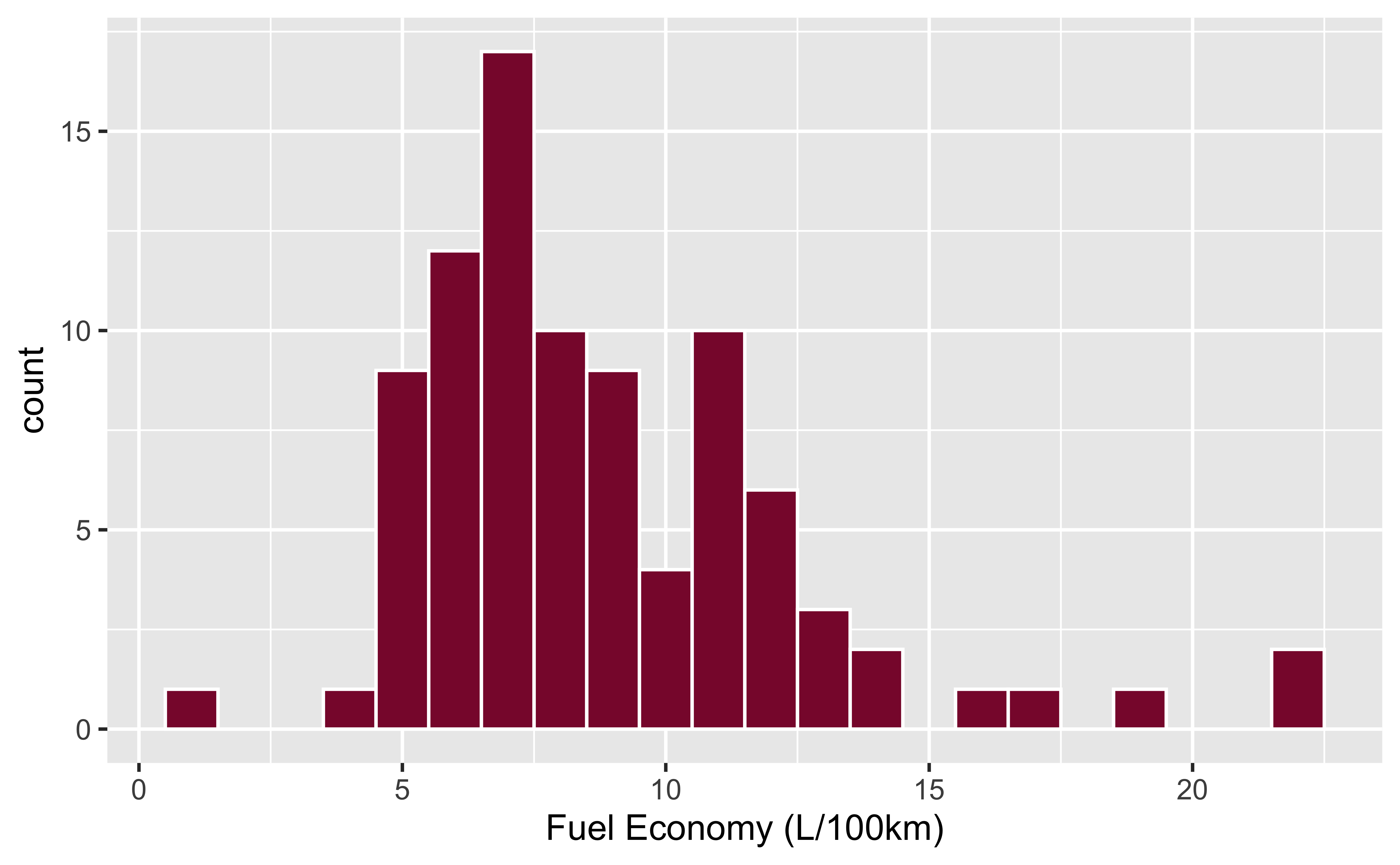 geom_histogram(binwidth = 1, fill = "#8A1538", color = "white")